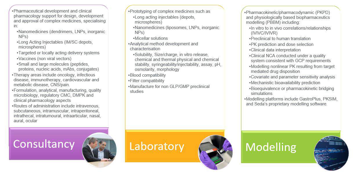 Due to the intimate link between formulation properties and in vivo performance (safety and efficacy) for complex parenterals, we believe our in-house modelling, DMPK and clinical pharmacology capability significantly enhances the value of our consultancy and laboratory offerings in the complex medicines space.