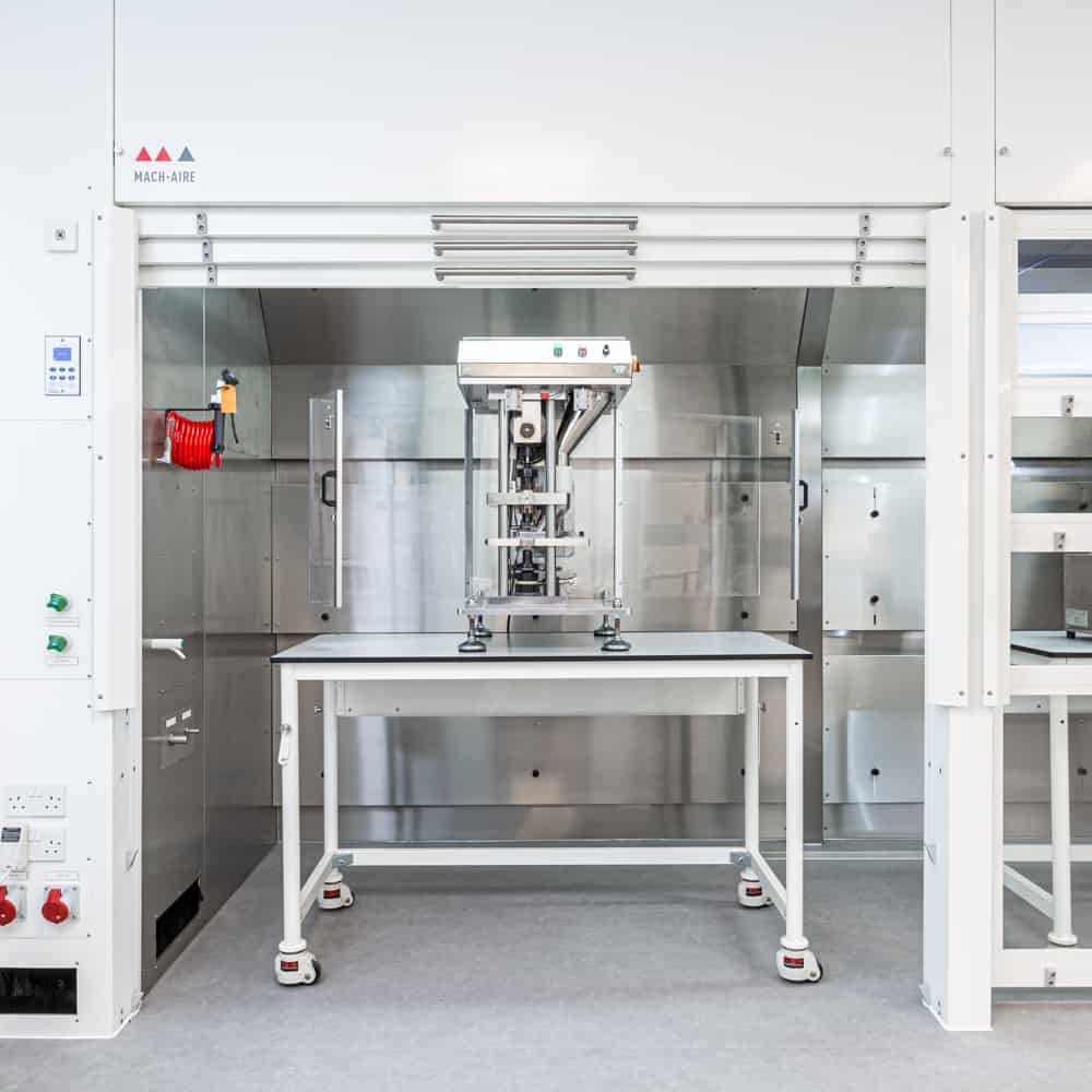With the increased focus on the development of highly potent APIs throughout the pharmaceutical industry in recent times, it was essential that we included an area dedicated to the safe processing of high potency materials at our new facility in Cheadle Royal. Our two state of-the-art walk-in powder booths allow us to process large quantities of powder, including HAPIs, and carry out the subsequent testing of these formulations with full confidence that we will ensure the safety of our scientists whilst maintaining our high quality of work. This novel approach allows us to accommodate a wide range of processing technologies without equipment-specific containment solutions and gives us the agility to onboard new projects rapidly.