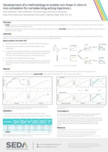 I was fortunate enough to have the opportunity to present “Development of a methodology to enable non linear in vitro in vivo correlation for complex long-acting injections” as a poster at the conference. Whilst the approach is purely empirical and non-mechanistic, so may not be suitable for a systems biology themed conference, the discussions and questions posed around generating a mechanistic understanding of the key in vitro/ in vivo biopharmaceutical differences were of great interest and will help to progress approaches for establishing non-linear IVIVC of LAIs.